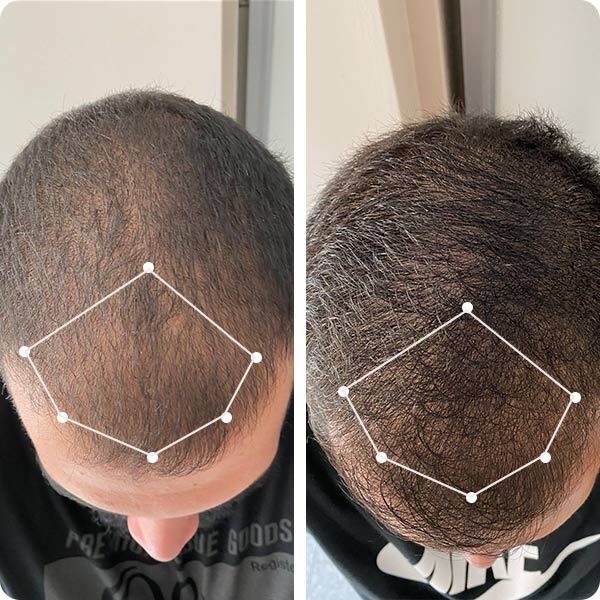 Water, Panthenol, Glycerin, Polysorbate-20, Propylene Glycol, Saw Palmetto Fruit Extract, Aloe Vera Leaf Juice, Green Tea Extract, Biotin, Horsetail Extract, Niacin, Calcium Pantothenate, Hops Extract, Burdock Root Extract, Henna Extract, Millet Seed Extract, Birch Leaf Extract, Nettle Leaf Extract, Chamomile Flower Extract, Sage Extract, Echinacea Extract, Calendula Flower Extract, Centella Asiatica, Melissa Leaf Extract, Witch Hazel Extract, Linden Flower Extract, Beta-Glucan, Maltodextrin, Benzoic Acid, Dehydroacetic Acid, Pea Seed Extract, Phenoxyethanol, Sodium Benzoate, Apple Stem Cell Extract, Lecithin, Xanthan Gum, Prickly Pear Stem Extract, Sodium PCA, Sodium Lactate, Arginine, Aspartic Acid, PCA, Glycine, Alanine, Serine, Valine, Proline, Threonine, Isoleucine, Histidine, Phenylalanine, Hyaluronic Acid, Tocopheryl Acetate, Sodium DNA, Potassium Chloride, Potassium Glutathione Isomerized Linoleate, Butylene Glycol, PPG-26-Buteth-26, PEG-40 Hydrogenated Castor Oil, Apigenin, Oleanolic Acid, Biotinoyl Tripeptide-1, Tocopherol, Alcohol, Grape Seed Extract, Fragrance, Ethylhexylglycerin.